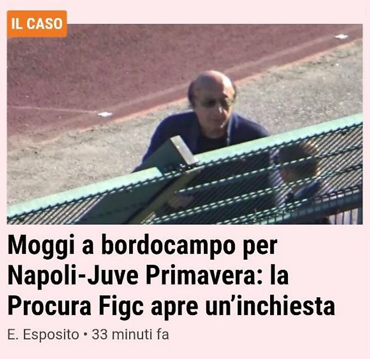 Прокуратура FIGC, возглавляемая Джузеппе Чине, начала расследование в отношении Лучано Моджи. Бывший генеральный директор «Ювентуса», лишенный лицензии после Кальчополи, присутствовал на бровке во время игры между Примаверами «Наполи» и «Ювентуса» 14 января.