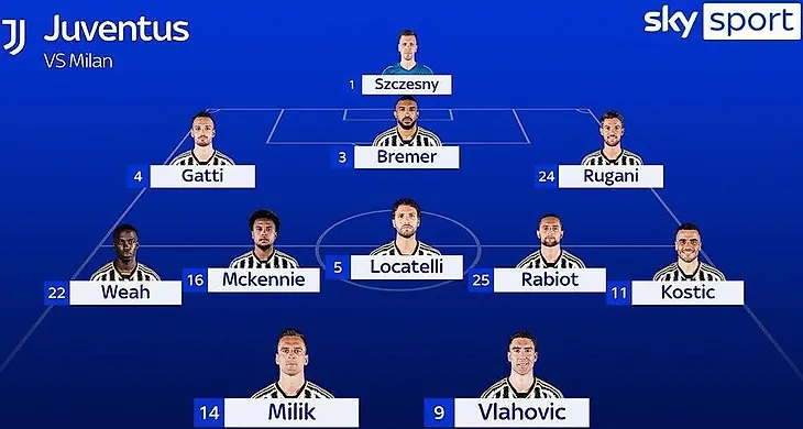 Автор Digart Вероятный состав «Ювентуса» на матч с «Миланом» по версии Sky Sport