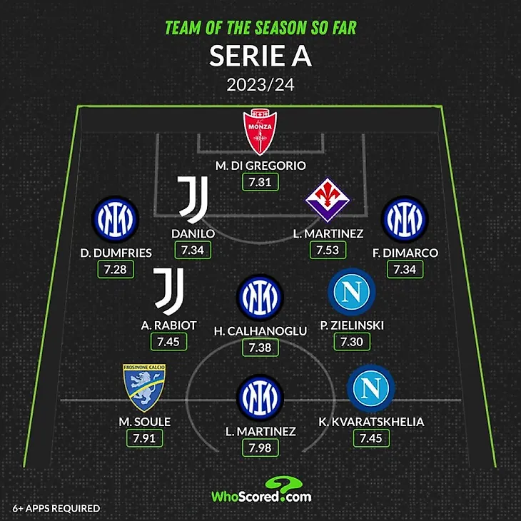 Автор Digart Вот так выглядит сборная лучших игроков Серии А после первых 8 матчей по версии WhoScored