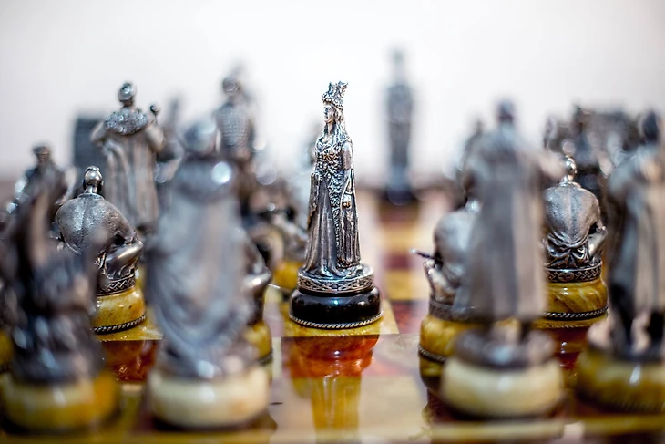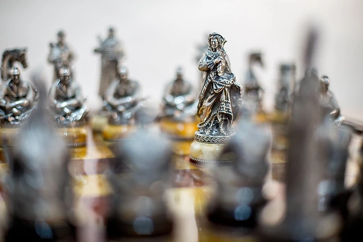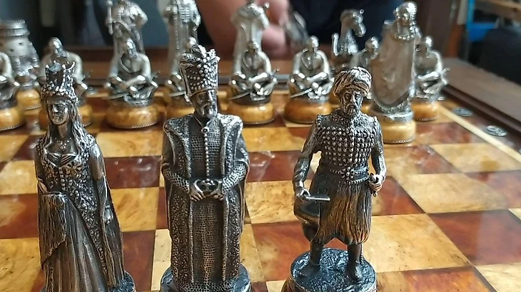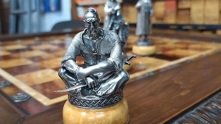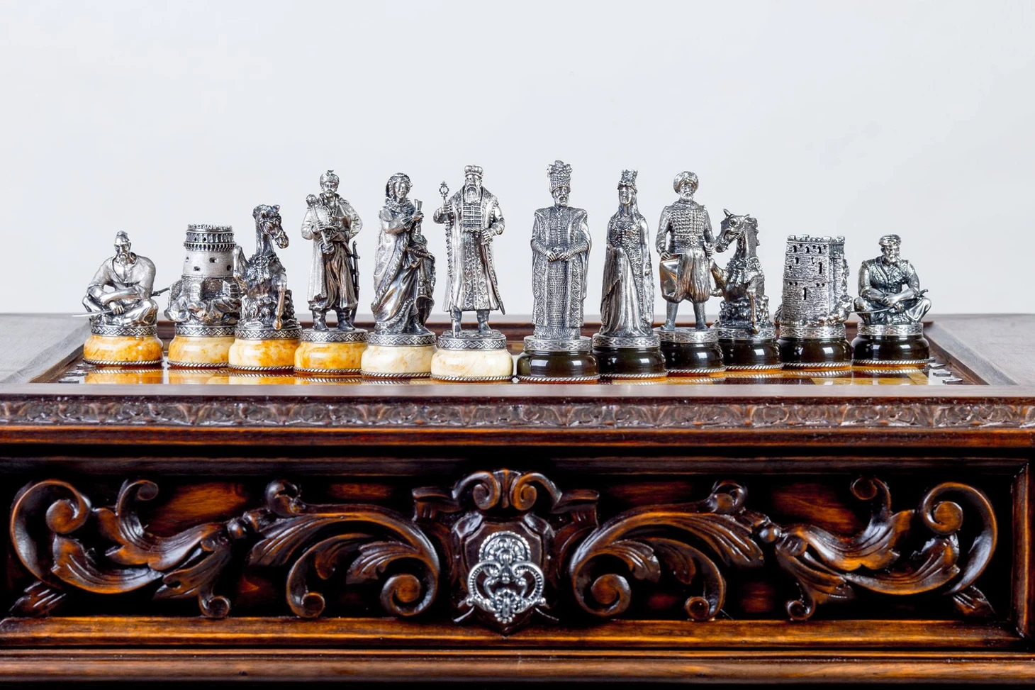 Шахматные фигуры здесь представлены в образах исторических деятелей ХVI века: с одной стороны - князья Острожские, с другой - османы во главе с султаном Сулейманом.