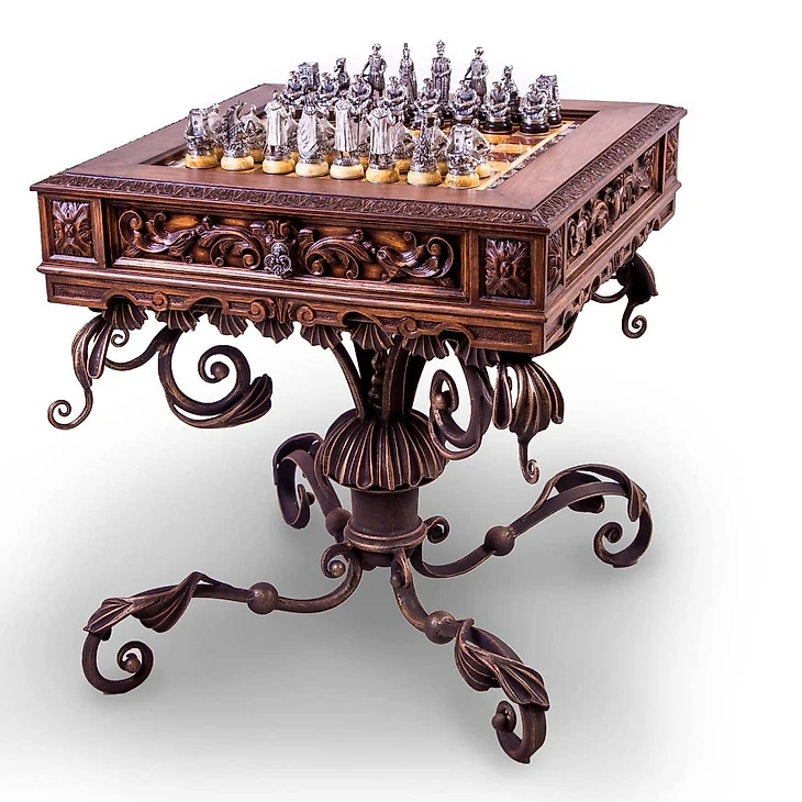 Металлическая отделка шахматного стола дело рук сына ювелира Августа Вольского - Артема Вольского, мастера кузнечного искусства.