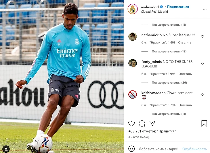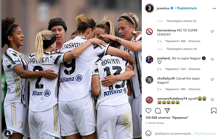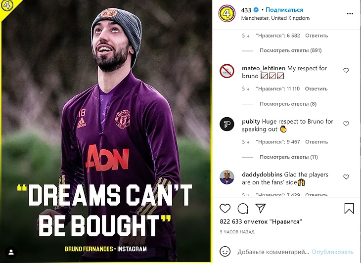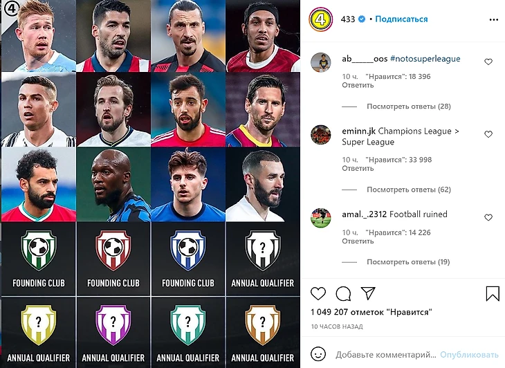 В комментариях самого популярного в мире Инстаграм-сообщества, посвященного футболу – 433, также огромное количество негативных комментариев про Суперлигу и ее создателей, несмотря на нейтралитет самого сообщества.