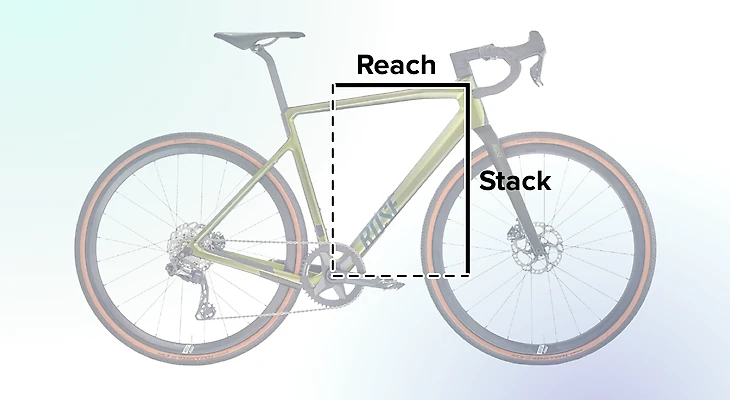 2. Используя рекомендации на официальном сайте производителя, определите свой размер велосипеда. Обращайте внимание на параметры stack и reach. Чем больше параметр reach, тем рама велосипеда длиннее. Чем больше параметр stack, тем рама выше.