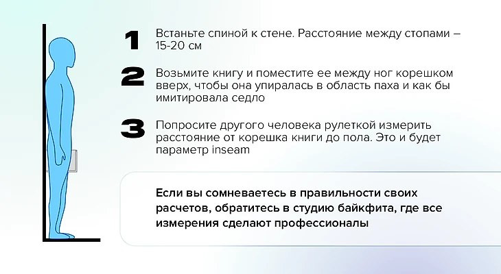Рекомендации основываются на росте человека и длине ног до промежности (в зарубежных каталогах параметр inseam), а в некоторых случаях калькулятор ростовки просит сделать дополнительные замеры. Однако данный расчет не учитывает другие важные параметры, такие как длина рук, гибкость, наличие травм, лимитирующих движения.