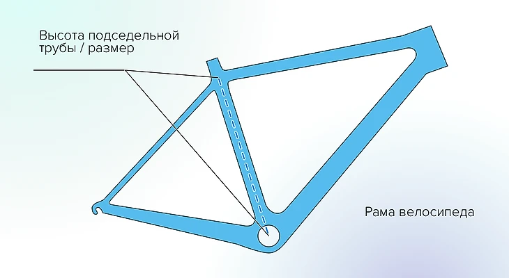 Размер рамы в сантиметрах или дюймах равен расстоянию от центра оси каретки (где крепятся педали) до центра верхней трубы (куда вставляется подседельный штырь с седлом).