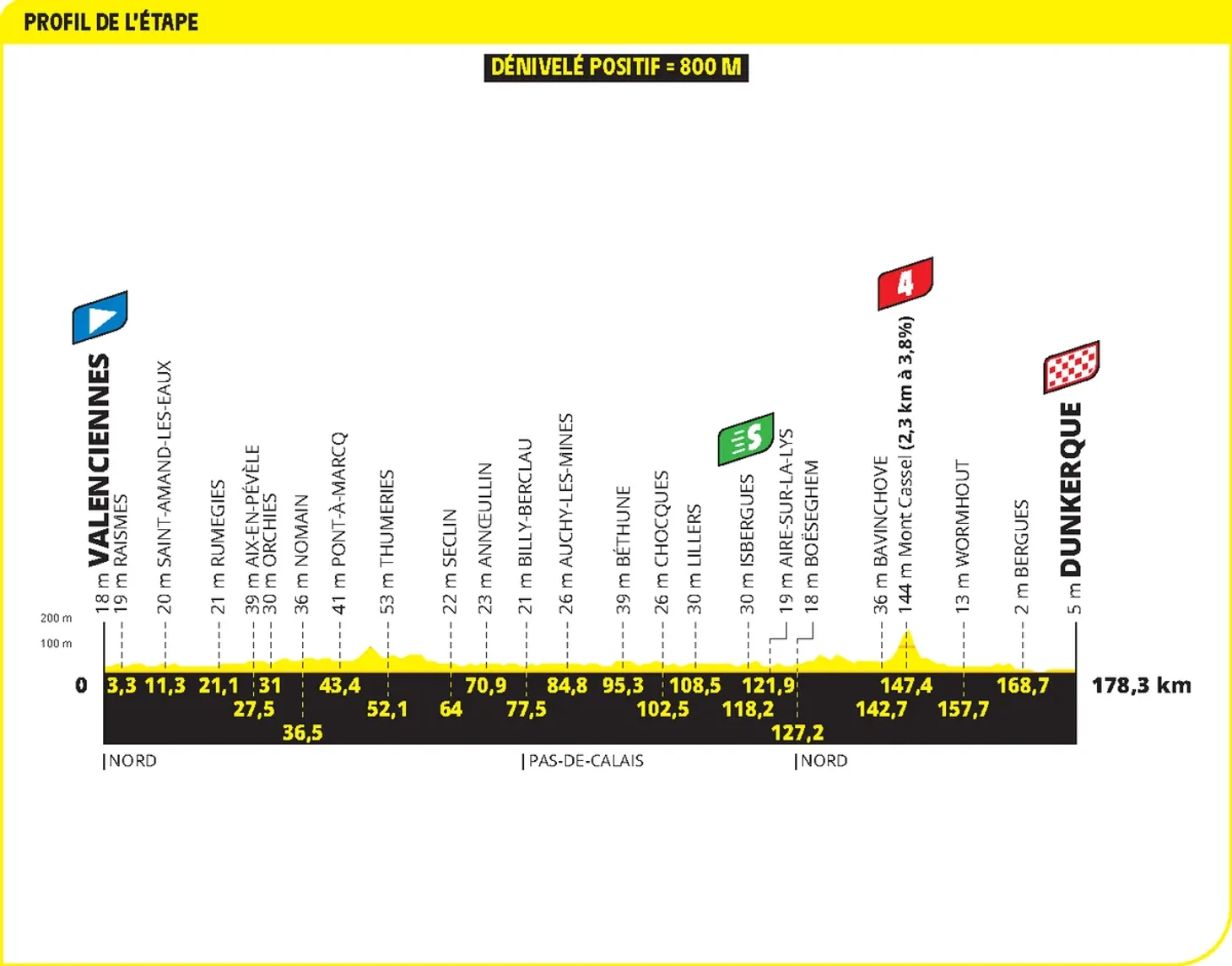 Возвращение в этот город на холме неслучайно, поскольку дорога поведет гонщиков непосредственно в Дюнкерк, о котором мы ранее уже неоднократно упоминали. В последний раз его проезжали на «Большой Петле» всего три года назад, однако, финиш этапа он не принимал уже почти четверть века – с 2001 года.