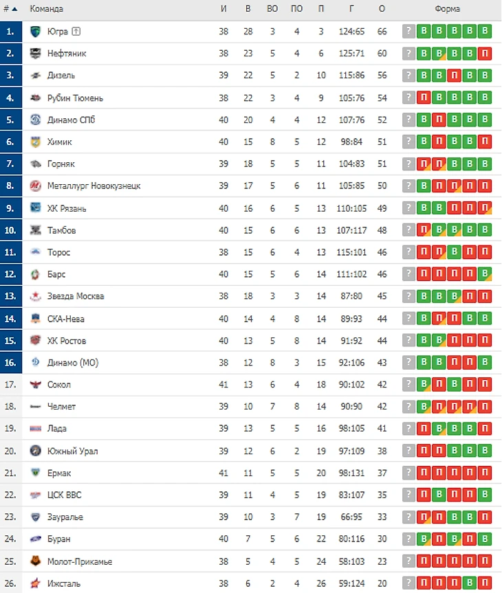 - Турнирная таблица на утро 18 января.
