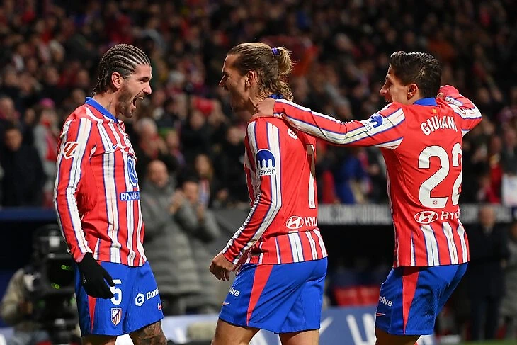 Контролировать мяч важно, но не меньшую роль играет реализация моментов. Она впечатляет: «Атлетико» забил 34 гола в этом сезоне лиги при 32,6 xG (третий показатель в лиге) – на 1,4 мяча больше ожидаемого, еще несколько туров назад перебирали аж на 4,4. Четкая реализация делает разницу в топ-матчах: яркий пример – недавние 2:1 с «Барселоной», в котором два гола мадридцы забили после четырех ударов в створ. Первый пришел после ошибки игрока каталонцев Марка Касадо, за которую моментально наказал Родриго Де Поль. Второй – на последних секундах матча, приговоривший соперника.