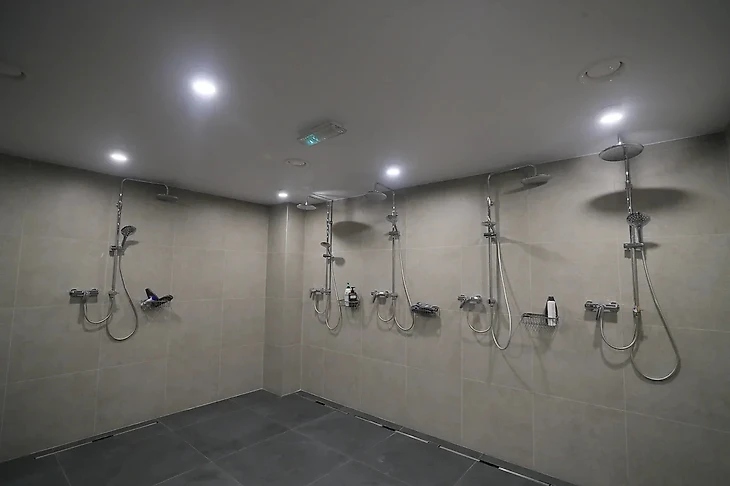 Более 300 квадратных метров, 18 шкафчиков для игроков, 6 душевых, постирочный комплекс, хамам, отдельное медико-реабилитационное крыло – 2 кушетки для процедур, 3 массажных стола, крио-кабинет, отдельные раздевалки для тренеров и персонала. Для оформления коридоров и общих площадей были специально приглашены граффити-художники.