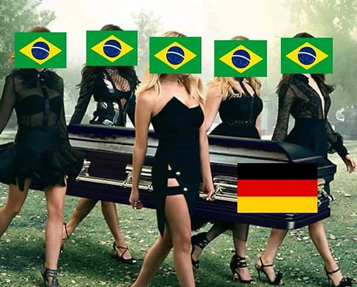 Вы знаете, почему Германия вылетела и не забила гол? Потому что в последнем кубке они потратили впустую 5 мячей, чтобы выиграть у Бразилии... 2 гола было бы достаточно, чтобы выиграть тогда, но нет, они забили 7! Вот теперь им даже гола не хватило!