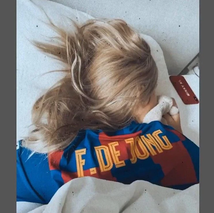 Девушка полузащитника «Барсы» Френки де Йонга заскучала из-за временной разлуки с футболистом, и поэтому спит в его игровой футболке.