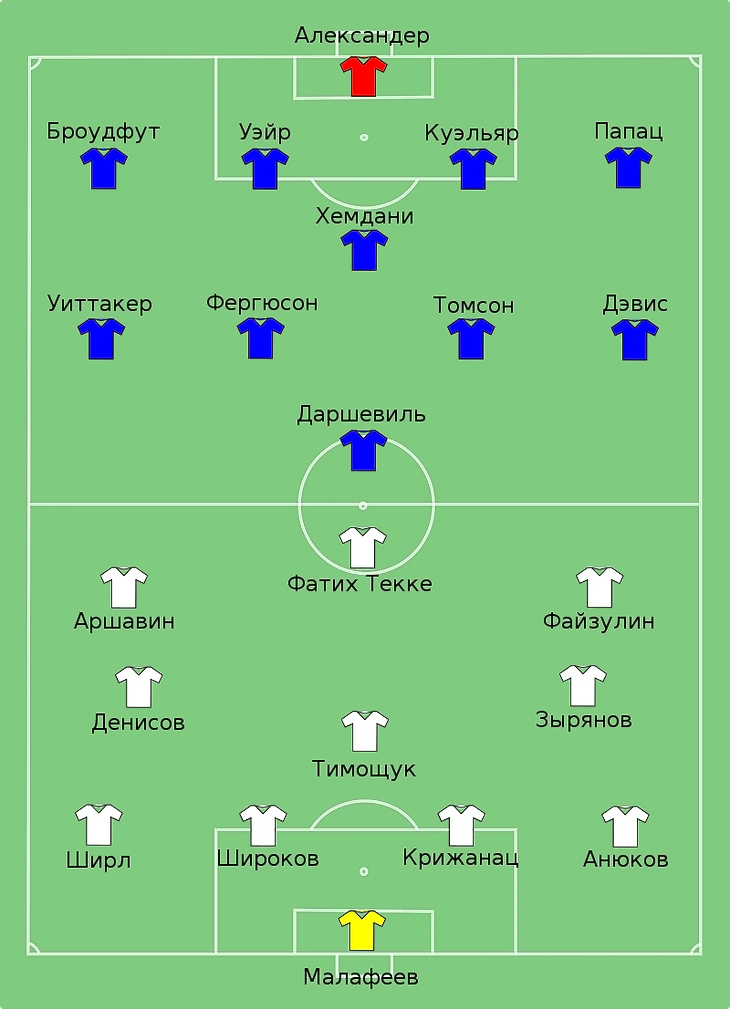 А теперь переместимся на три года вперед, в не менее славный для российского клубного футбола, 2008-й год. Год, когда Зенит под руководством Дика Адвоката, повторил достижение ЦСКА и снова взял кубок УЕФА. Вот состав той команды