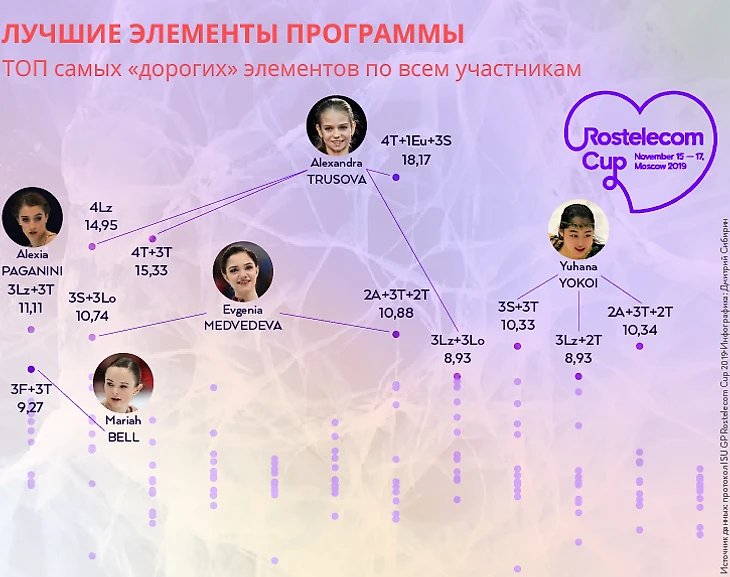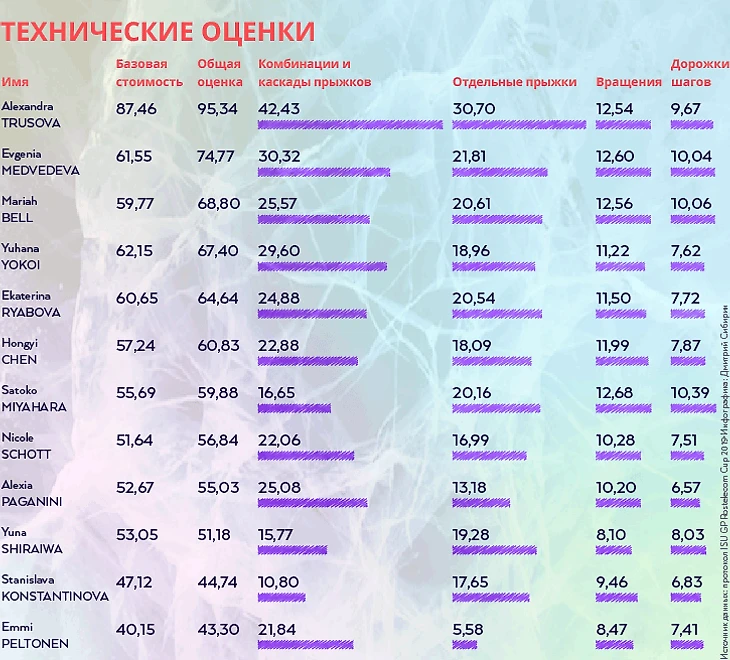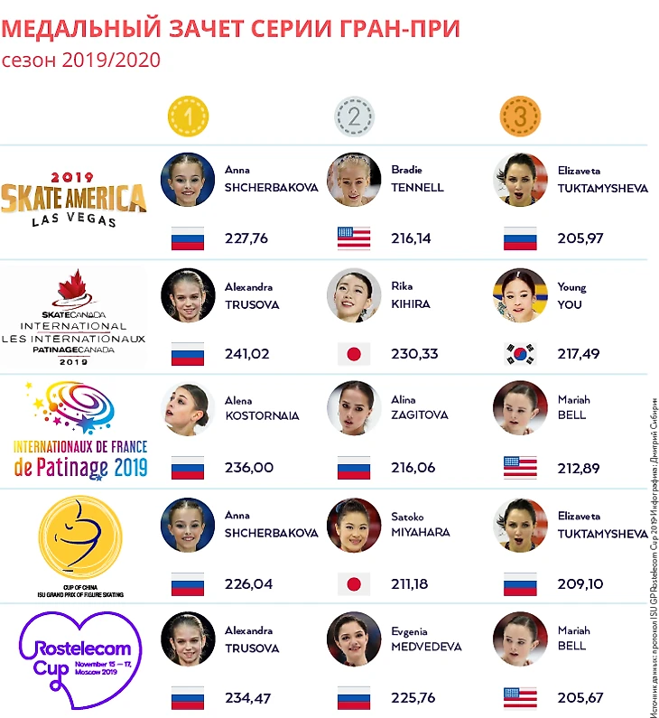 Итоговые результаты, технические оценки, лучшие элементы, медальный зачет Гран-При