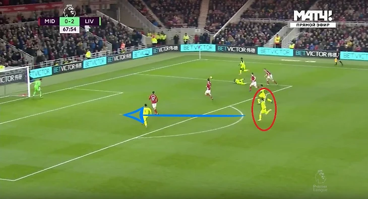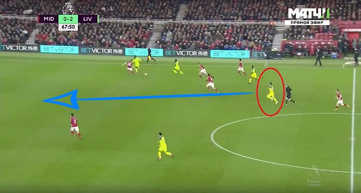 Нечто похожее произошло в игре с «Мидлсбро». Ориги и Мане увели на фланг трех игроков «Боро» и разыграли отличную комбинацию, в то время как Антонио Барраган следил за движением Фирмино по центру. Лаллана снова поддерживал атаку из глубины и рванул в гигансткую свободное зону, как только она появилась.