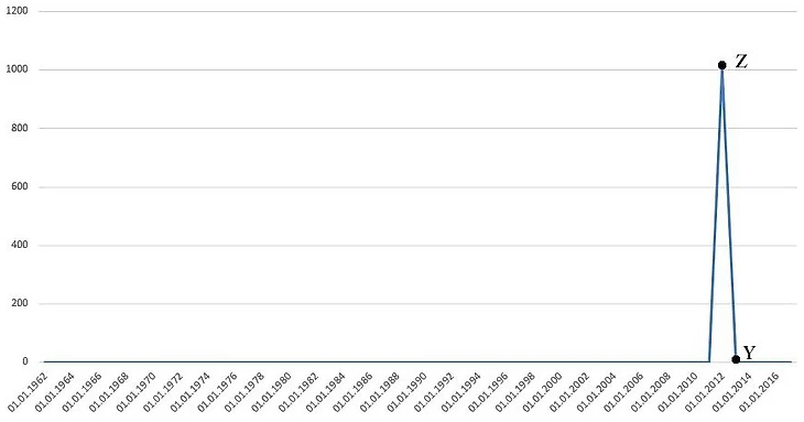 Если бы меня попросили нарисовать простой и наглядный график, чтобы одновременно проиллюстрировать и историю товарищеских матчей сборных, и карьеру рэпера PSY, вот как бы он выглядел: