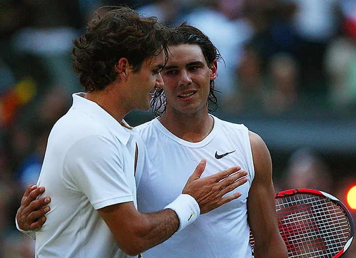 27. За шесть дней до феноменального перформанса Дзагоева в дерби, на другом конце Европы произошло нечто не менее выдающееся: Роджер Федерер и Рафаэль Надаль встретились в финале «Уимблдона» и выдали, возможно, лучший теннисный матч, который мы когда-либо видели. Четыре с половиной часа первоклассного шоу на пределе возможностей, самый длинный финал в истории Уимблдона, мрачное дождливое небо, Федерер, который взял пять трофеев подряд и все еще находился на пике, Надаль, который проиграл ему эпичный пятисетовый финал в 2007-м и выглядел так, как будто разобьет себе ракетку об голову, если проиграет снова, и легендарное падение Рафаэля на корт в самом конце в стиле ЭмДжея после победы над «Суперсоникс» в финале 1996-го. Один из величайших моментов в истории спорта. Никаких сомнений.