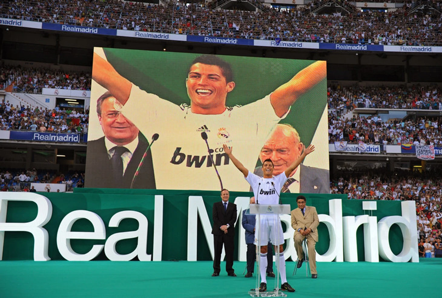 1) Вернувшись в «Реал» через три года после поражения на выборах 2006 года, Флорентино Перес пошел привычной дорогой: Галактикос, блеск, суперзвезды – с первого же дня. Даже сейчас, спустя десять лет, сложно представить себе, чтобы кто-то представлял игроков с тем же размахом, с каким делал это «Реал» в случае с Кака и Роналду: полный стадион, винтажные легенды, громадные телевизоры, показывающее голы и хайлайты, длинный, как ноги моделей, подиум в стиле гала-шоу Victoria Secret, даже какой-то местный ребенок, поднимающийся на сцену к Роналду прямо во время презентации. Все это походило на яркий, отполированный, даже слишком претенциозный трейлер какого-нибудь очередного экшна Marvel про супергероев.