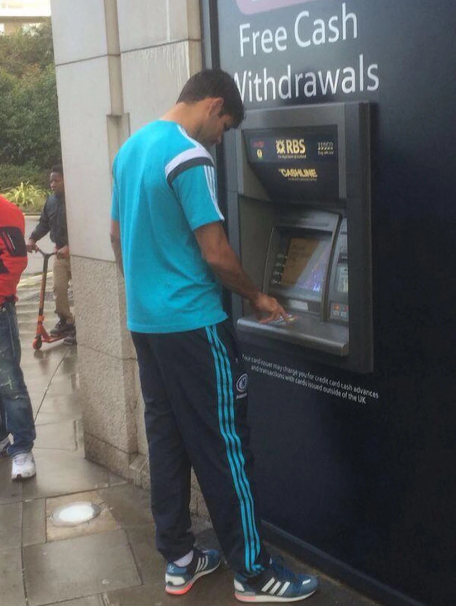 Гениальная фотография, поймавшая Диего Косту около лондонского банкомата через пару часов после очередного гола за «Челси» на старте сезона.