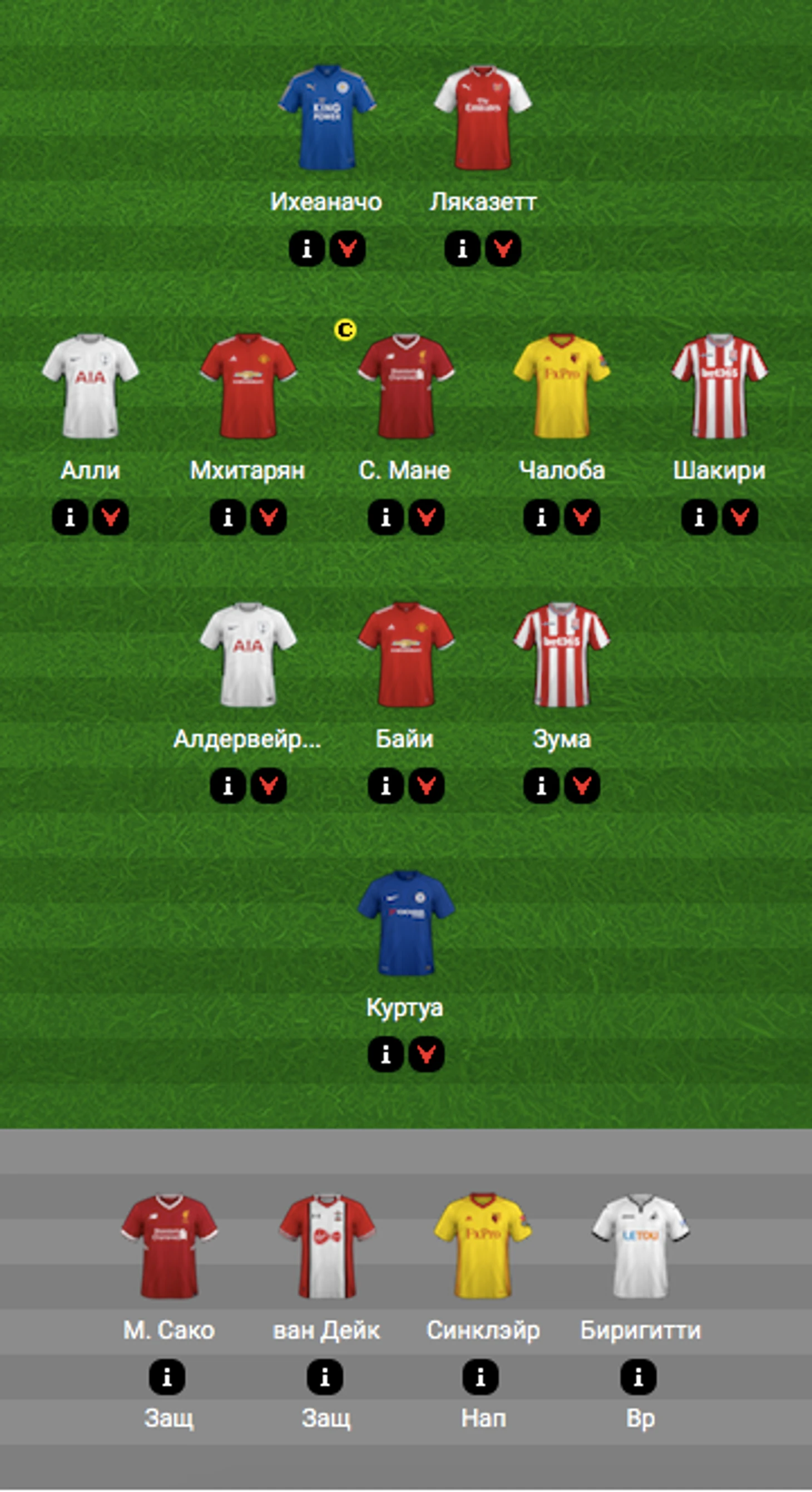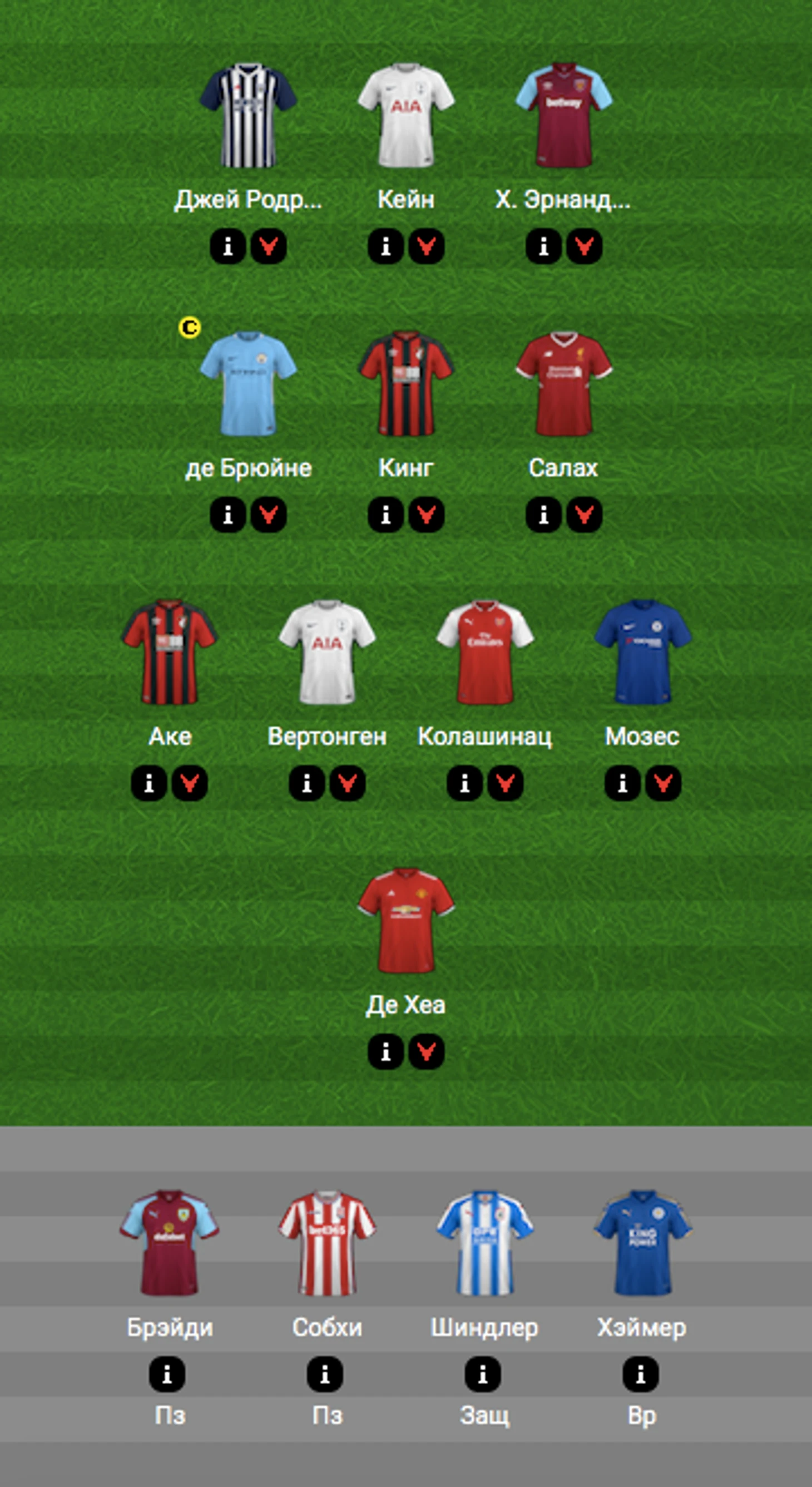 Сильно сомневаюсь, что «Челси» закончит этот сезон в тройке, но с обороной у них наверняка все будет в порядке (по крайней мере, лучше чем у «Сити», «Арсенала» и «Ливерпуля»). Кроме того, мне слишком нужны Мхитарян и Байи. Так что увы, на этот раз без Де Хеа.
