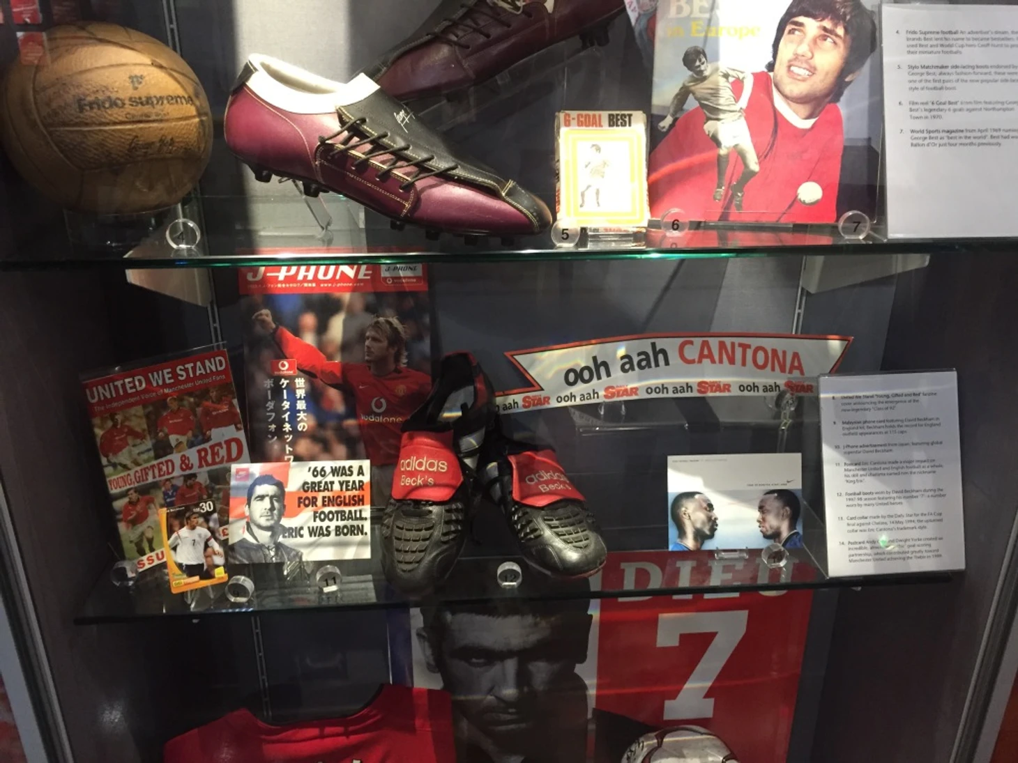 В соседнем зале – бутсы Бекхэма, старые журналы и фотографии.