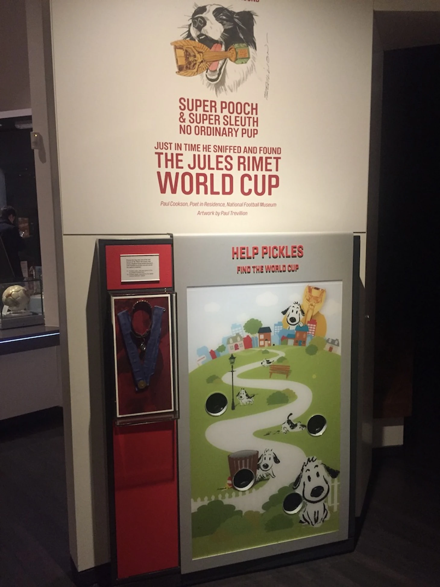 Главный капитал музея – бесконечное количество историй, шокирующих и смешных, грустных и странных, которые встречаются здесь на каждом шагу. Скажем, интерактивный автомат, спрятавшийся в глубине зала на первом этаже, предлагает вам помочь колли по кличке Пиклз найти кубок мира. Это – отсылка к реальной истории о собаке, которая в 1966 году «спасла Англию от позора»: когда за три месяца до ЧМ кто-то украл оригинальный кубок из Вестминстерского аббатства, Пиклз и ее хозяин Дэвид Корбетт случайно нашли его в кустах на юге Лондона. Корбетт получил за это 6 тысяч фунтов, на которые купил новый дом, а Пиклз – приглашение на праздничный банкет после победы Англии на чемпионате.