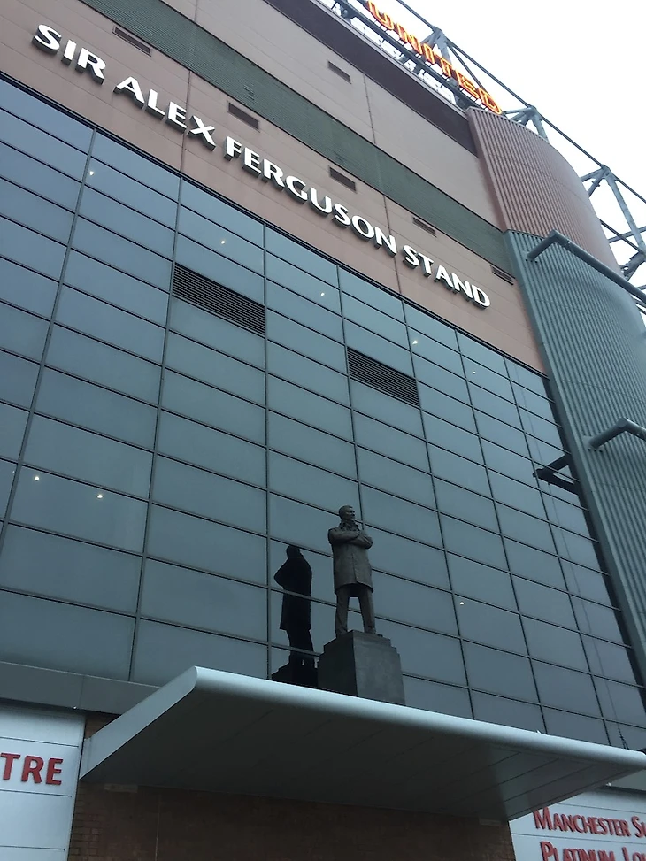 За какой бы клуб вы ни болели – «Челси», «Бавария» или «Зенит» – «Олд Траффорд» производит оглушительное впечатление. Все равно что оказаться в Лондоне или Нью-Йорке и попасть во все фильмы и сериалы одновременно – от «Кинг-Конга», «Гарри Поттера» и «Друзей» до «Энни Холл», «Шерлока» и «Манхэттена». Достаточно просто прищуриться – и кажется, что Уэйн Руни прямо сейчас делает кульбит в дерби перед твоими глазами, Роналдо оформляет хет-трик, а Бекхэм кладет очередной сумасшедший штрафной. Но для начала придется посмотреть в глаза сэру Алексу Фергюсону: легенда «МЮ» встречает вас у входа на северную трибуну.