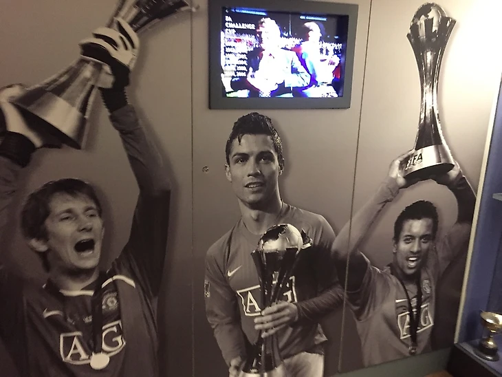 Финальная точка тура – красочный клубный музей, который открывается портретом Криштиану и роликом о самых ярких победах «МЮ».
