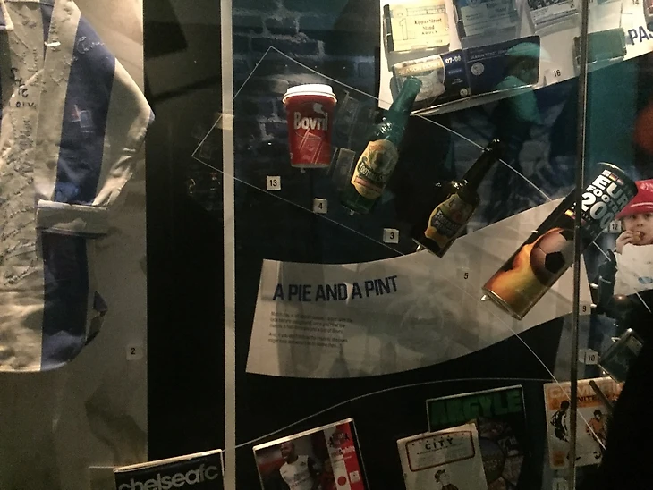 Чуть левее – длинная и печально-смешная стена, посвященная бесконечным неудачам тренеров сборной Англии с цитатами Стива Макларена в духе «Я пойду своим путем» (ага), а позади – блистательный стенд с культовыми стадионными блюдами вроде боврила (густого бульона), бутылки пива Football Punch и Его Святейшества Пирожка, о котором мы, несомненно, поговорим в отдельном тексте. Собственно, на этом кулинарная коллекция и заканчивается, ведь, как известно, лучшая английская кухня – это французская кухня.