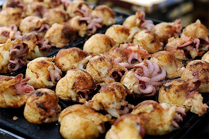 Такояки – зажаренные в сковороде шарики из теста с начинкой из осьминога – абсолютный хит любого японского стадиона.