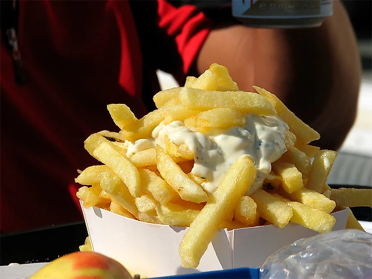 Это не мешает им съедать около 75 кг жаренного картофеля на человека в год и продавать фри примерно на каждому шагу – в том числе на стадионах, где ее мощно поливают майонезом и поглощают в перерыве (полное название: frites mayonnaise).