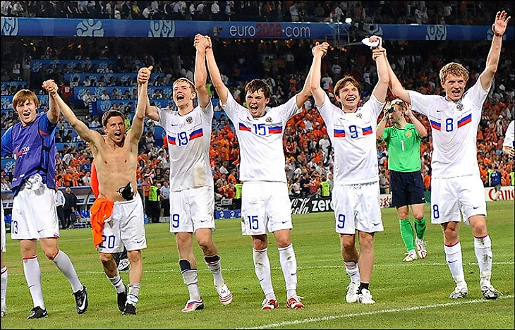 Четвертьфинал против Голландии российские болельщики вспоминают по сей день, а вспоминать было что. Подопечные Хиддинка реально переигрывали главного фаворита турнира. На 54 минуте Роман Павлюченко вывел свою сборную вперёд, однако на 86 минуте соперник сравнял счёт, что не смутило россиян. Сначала на 112 минуте Дмитрий Торбинский заводит мяч практически в пустые ворота, а через четыре минуты Андрей Аршавин ставит жирную точку, забив Эдвану Ван дер Сару между ног. Так «оранжевые» бесславно покинули турнир, который для них мог триумфально закончиться. Что касается россиян, то в полуфинале они уступают невероятным испанцам со счётом 0:3, однако все голы были забиты во второй половине второго тайма. Для российской сборной выступление на Евро является самым успешным за всю их историю.