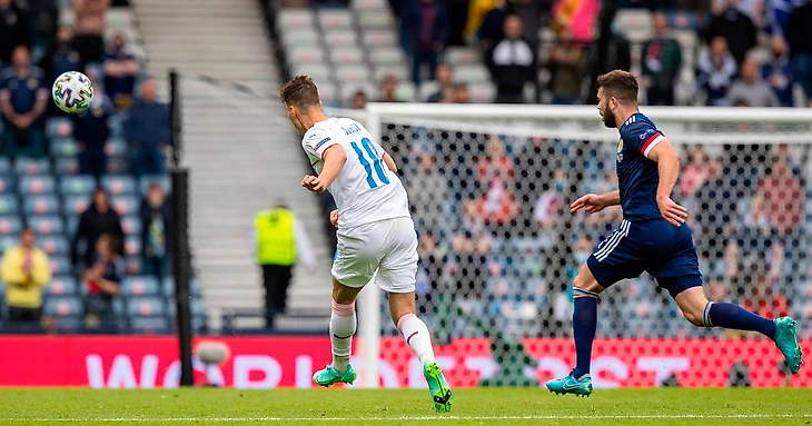 Вечно всеми осуждаемый, форвард взял да и выдал однозначно один из лучших матчей в своей карьере, оформив прекрасный хэдер и войдя в историю как автор гола с самой дальней дистанции (45,5 метра) в истории чемпионатов Европы. Мог забить и больше, Маршалл выручал. Шик действовал максимально уверенно в каждом своем эпизоде, и на наш взгляд, именно разница в классе форвардов и оказалась определяющей в исходе матча в Глазго.