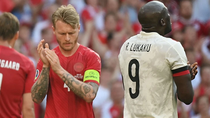 Бельгия и Дания, безусловно, выдали один из лучших матчей на Евро. Дания в первом тайме просто разрывала вяленьких бельгийцев, прессинг практически в чужой штрафной сразу же принес результат в виде гола Поульсена, а Кьяер тем временем на своей половине поля действовал персонально по знакомому из миланского дерби сопернику Лукаку, и не оставил практически камня на камне от него. После полтайма игры на высочайших скоростях, Дания немного отошла и начала играть по лекалам тухелевского Челси выстроив 5-2-3 с очень мобильной группой форвардов, которые раз за разом запутывали бельгийскую оборону с непонятно почему вышедшим Денайером. Но во втором тайме Мартине сделал свой ход выпустив восстановившегося после финала ЛЧ де Брейне ложной девяткой, а Лукаку передвинув направо, куда за ним уже неудобно бегать Кьяеру. В итоге продавив Вестергора и того же Кьяера, не успевшего с подстраховкой, Лукаку стартанул с центра поля, выждал подключение де Брейне, который как в замедленной съемке усадил на пятую точку защитника и выдал блестящий пас Торгану на пустые ворота. Ну а после был еще и выход Эдена, который непосредственно поучаствовал во втором голе, сместившись с левого фланга в центр, освобождая простор для блуждающего де Брейне, который завершил лучшую комбинацию турнира, начатую Лукаку, мощнейшим ударом в угол.