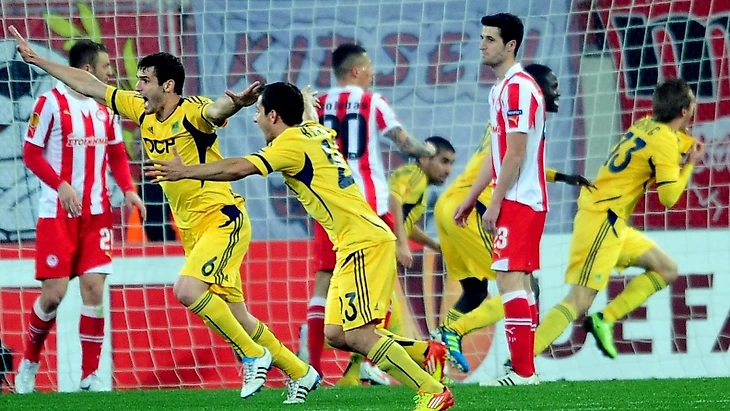 Еврокубковый сезон 2011/2012 украинские клубы провели не лучшим образом. От донецкого "Шахтера", дошедшего годом ранее до четвертьфинала Лиги Чемпионов, ожидали как минимум повторения успеха. Много надежд возлагалось и на киевское "Динамо", которое тогда тренировал Юрий Семин и под руководством которого в предыдущем сезоне киевляне дошли до четвертьфинала Лиги Европы, где уступили будущему финалисту, португальской "Браге", лишь по голам на выезде, ни разу не проиграв сопернику. Ждали по крайней мере выхода в групповой этап Лиги Европы от "Днепра", который тогда уже имел достаточно сильный состав и который тогда возглавлял небезызвестный Хуанде Рамос. Но ожидания не оправдались... "Динамо" вылетело из Лиги Чемпионов, дважды проиграв с общим счетом 1-4 в третьем отборочном раунде казанскому "Рубину". Команде удалось пройти в группу Лиги Европы, киевляне дважды обыграли с общим счетом 3-1 болгарский "Литекс" в раунде плей-офф. Но в группе с "Бешикташем", "Сток Сити" и "Маккаби" из Тель-Авива подопечные Семина набрали лишь семь очков и заняли третье место! Что интересно, в феврале 2011 года "Динамо" дважды разгромило "Бешикташ" с общим счетом 8-1... "Шахтер" занял последнее место в квартете с АПОЭЛем, "Зенитом" и "Порту", набрав всего пять очков и одержав единственную победу лишь в шестом туре, когда все уже было ясно. "Днепр" не сумел пройти лондонский "Фулхэм" в раунде плей-офф Лиги Европы, максимум что удалось команде - обыграть англичан в ответной домашней игре. Неплохо в том сезоне выступила "Ворскла" - выход в групповой раунд Лиги Европы сам по себе стал для команды огромным успехом. В компании с льежским "Стандардом", "Ганновером" и "Копенгагеном" команда сумела набрать два очка, и на выход в плей-офф не претендовала. Спас провальный сезон харьковский "Металлист". Клуб стартовал в раунде плей-офф Лиги Европы. После нулевой ничьей в домашнем матче с французским "Сошо" казалось, что еврокубковый сезон для подопечных Маркевича закончится, едва начавшись. Но во Франции "Металлист" сенсационно разгромил соперника 4-0 и триумфально вышел в группу! В компании с АЗ, венской "Аустрией" и "Мальме" подопечные Маркевича выиграли четыре матча и еще две игры завершили ничьими, за тур до окончания группового этапа гарантировав себе первое место. В 1/16 финала "Металлист" не заметил "Зальцбург". Подопечные Мирона Маркевича дважды разгромили соперника (4-0 в гостях и 4-1 дома). В 1/8 финала после домашних 0-1 харьковчане сумели победить в гостях со счетом 2-1 греческий "Олимпиакос" и выйти в четвертьфинал!
