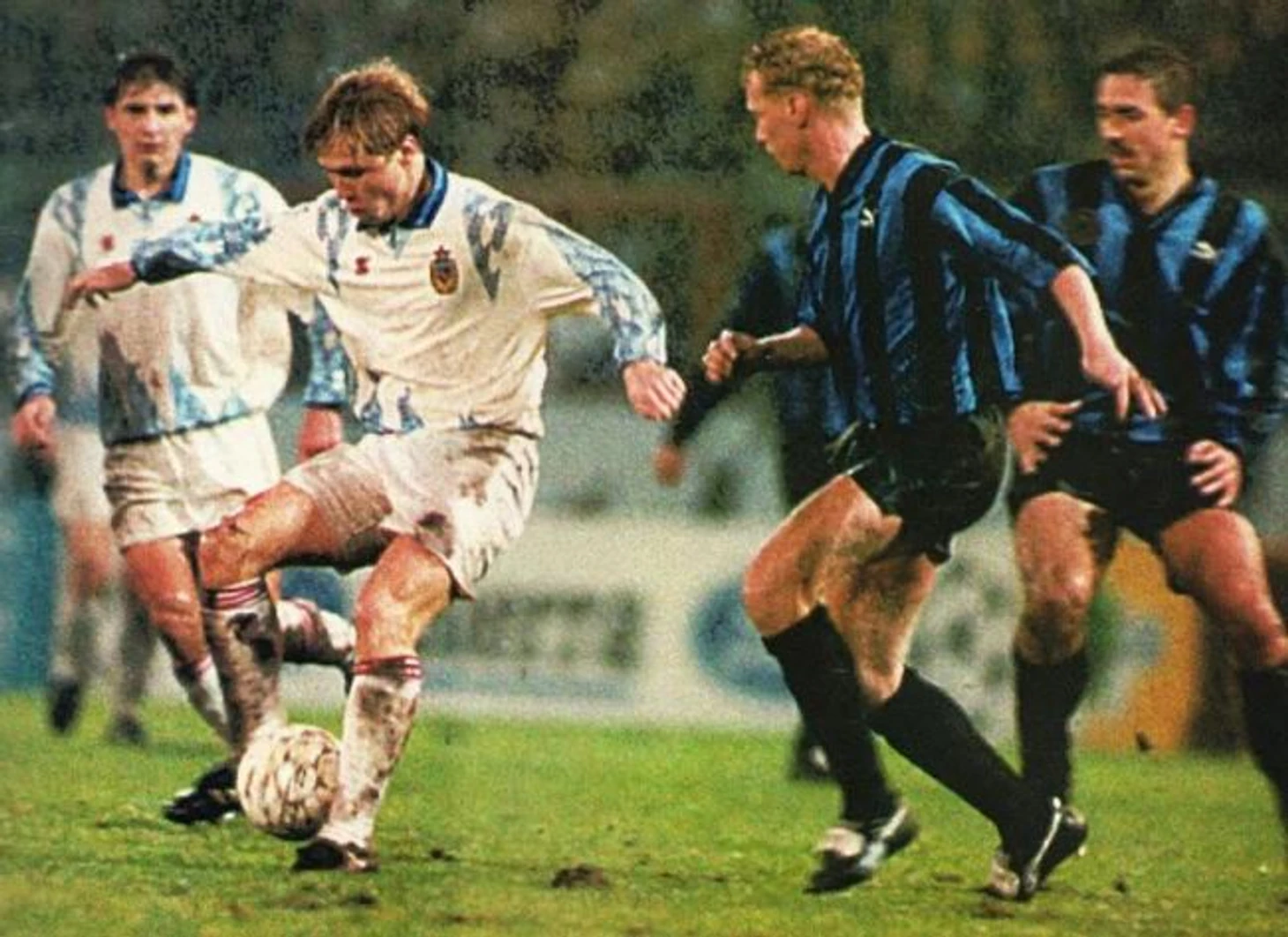 В 1992 году главный еврокубок сменил название, превратившись из "Кубка" в "Лигу Чемпионов". Одним из участников группового этапа новообразованного турнира стал московский ЦСКА. Для попадания в группу чемпиону России пришлось пройти два раунда. Но если победе над исландским "Викингуром" не удивился никто, то в 1/8 финала ЦСКА вышел победителем из двухматчевого противостояния с "Барселоной". В первом матче, проходившем в Москве, команды не сумели выявить победителя, ничья 1-1. Зато на "Камп Ноу" ЦСКА, уступая 0-2 по ходу матча, сумел выиграть 3-2 и отправить действующего победителя Кубка Чемпионов домой! Но вот матчи группового этапа ЦСКА был вынужден проводить в Германии.
