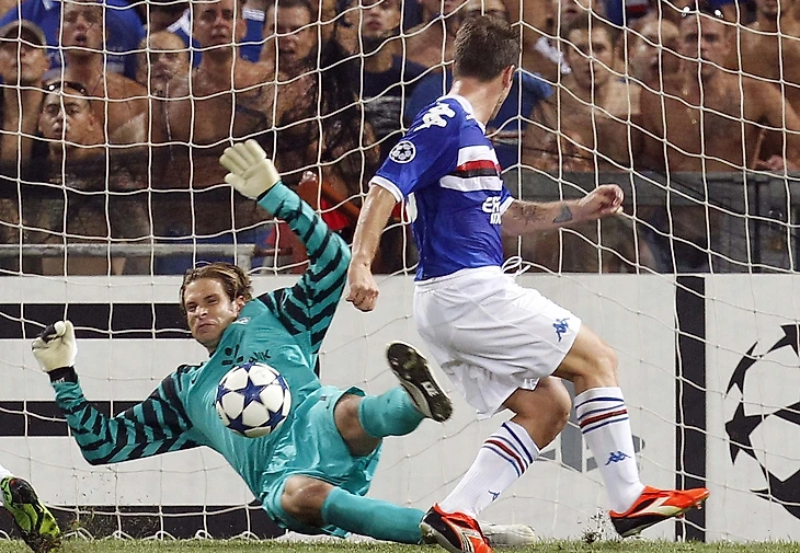 А в дополнительное время гости забили второй мяч, что позволило им выйти в групповой этап Лиги Чемпионов. "Сампдория" продолжила сезон в Лиге Европы, где не сумела выйти из квартета с ПСВ, "Металлистом" и "Дебреценом", набрав в шести матчах всего пять очков. Но уже на следующий сезон "Сампдория" вылетела из Серии А, заняв 18 место из 20 и отстав от спасительной 17 строчки на целых пять очков! Команда в кратчайшие сроки (проведя в серии В всего один сезон) Всего через один сезон, вернулась в элиту, после чего не покидала Серию А ни разу. Но на Лигу Чемпионов "Сампдория" с тех пор команда ни разу не претендовала.