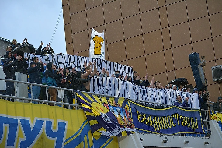 А потом состоялось трогательное прощание с родным стадионом Алексея Грицаенко, для которого фанаты приготовили персональный перфоманс.