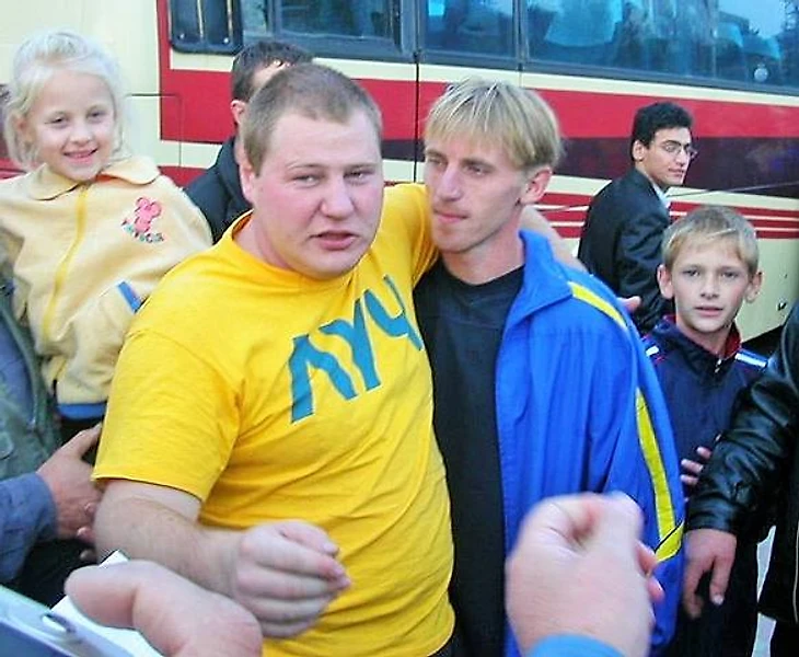 Александр Смирнов – связующее звено между «лихими» 1990-ми и «золотыми» 2000-ми. Парень из Арсеньева, который до прихода в «Луч» в 25-летнем возрасте играл на край футбол и хоккей с мячом, добился того, что в качестве капитана команды принёс болельщикам долгожданное возвращение в Первый дивизион в 2003 году. (На фото - сразу после исторической победы над "Селенгой").
