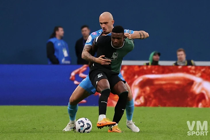 А буквально через две минуты он же мог сделать дубль после своего удара головой, нанесённого в высоком прыжке по воротам соперника после навеса с фланга Дугласа Сантоса, но на этот раз вратарь «Краснодара» не дал мячу в лететь в нижний угол и смог его отбить.