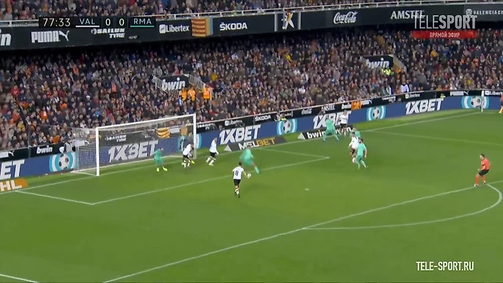 Но во втором тайме ничего не изменилось, остроту в атаке стабильно создавать не получалось, при этом и у своих ворот спокойно не было, у "Валенсии" получались неплохие подходы. Зидан полностью поменял фланги атаки- вместо Иско и Родриго появились Винисиус и Бэйл, теперь в виду исполнителей все стало стабильно- Винисиус слева, Бэйл справа. Однако "Реал" получил закономерный гол, после которого приходилось думать о том, как бы отыграться (обратите внимание на Солера, в одиночестве вбегающего в штрафную- Вальверде бежит к мячу, полузащита не успевает; да, это быстрая атака после длинного паса, но такие разрывы периодически возникали у гостей).