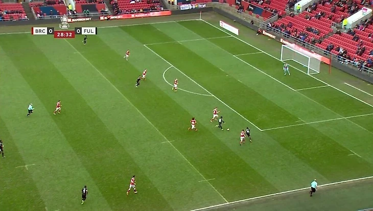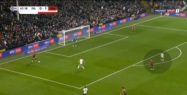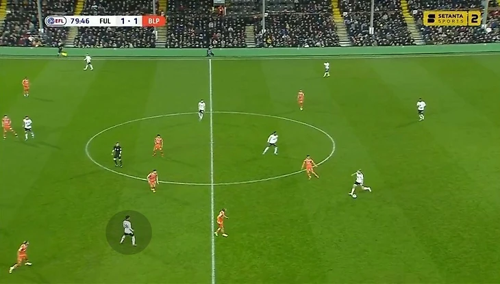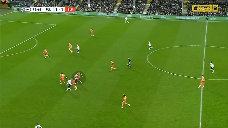 Но здесь помимо базовых раскрывается еще одно важное качество Карвальо – он сам умеет отклеиться от соперника и открыться под передачу без опеки. Фабио чувствует момент, когда защитник смотрит на мяч или теряет позицию, и делает рывок в финальную треть. После одного из таких открываний он отдал ассист на Митровича в игре с «Блэкпулом».