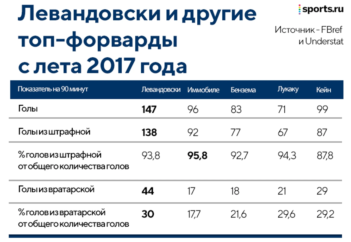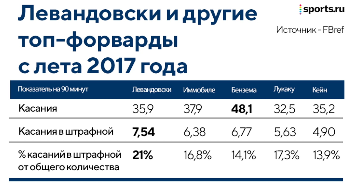 Безоговорочно ориентироваться на подобное сравнение нельзя. Всегда нужно учитывать стиль команды и роль самого игрока у конкретного тренера. Но показатели подтверждают, насколько качественно Левандовски открывается внутри штрафной.