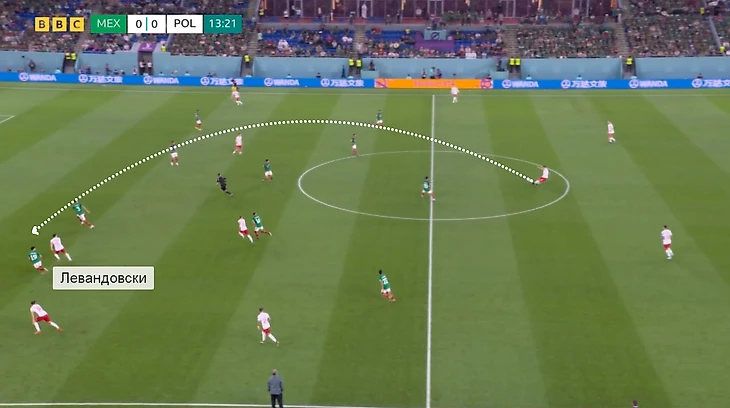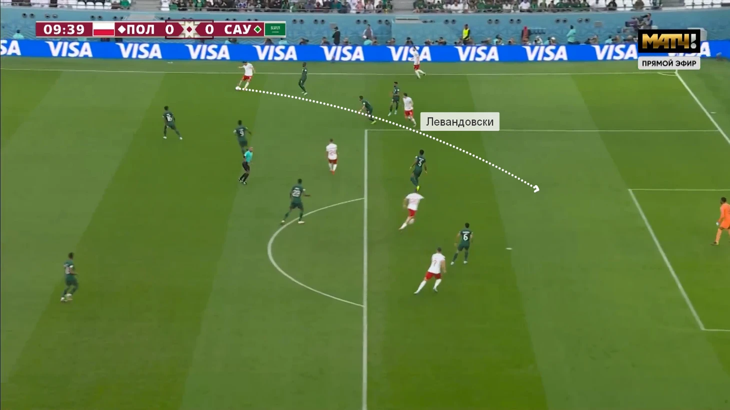 Стиль Польши с упором на контратаки как помогает, так и негативно влияет на Левандовского. У него появляется больше пространства, но изначально Роберт принимает мяч высоко и тратит много сил на движение в финальную треть (в «Баварии» и в «Барселоне» другие принципы).