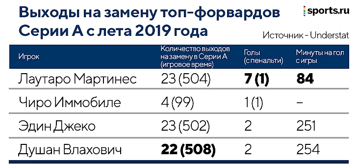 С лета 2019 года в Серии А Лаутаро не проводил на поле меньше 66,7% времени за сезон и привык к роли основного форварда. Выходы по ходу матча – неестественная среда для него.