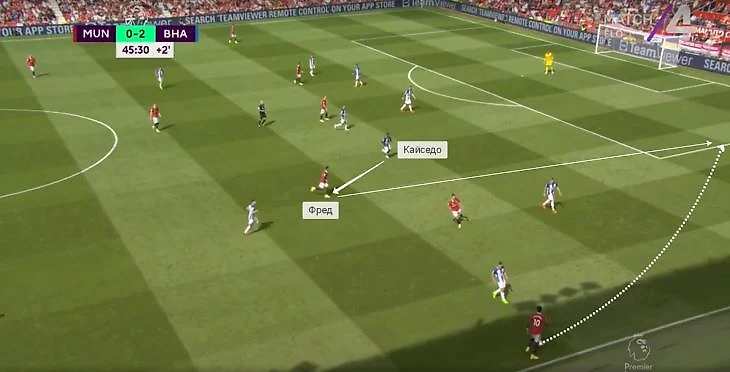 Яркий пример: Кайседо увидел рывок Фреда за спину Уэбстеру и сразу пошел за ним.