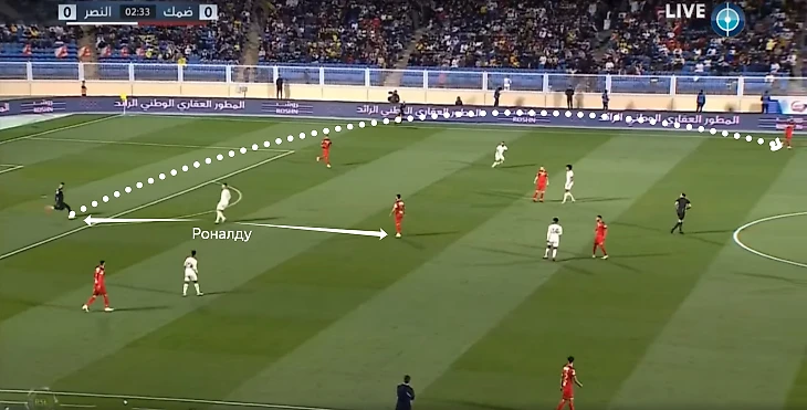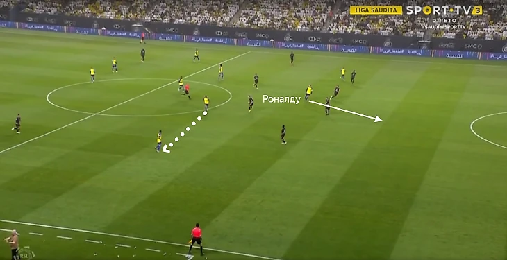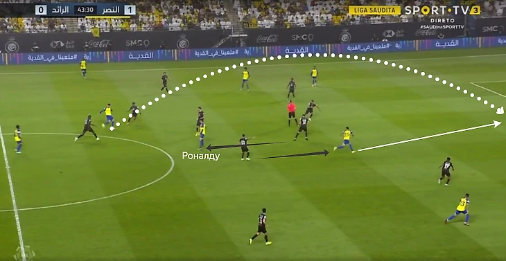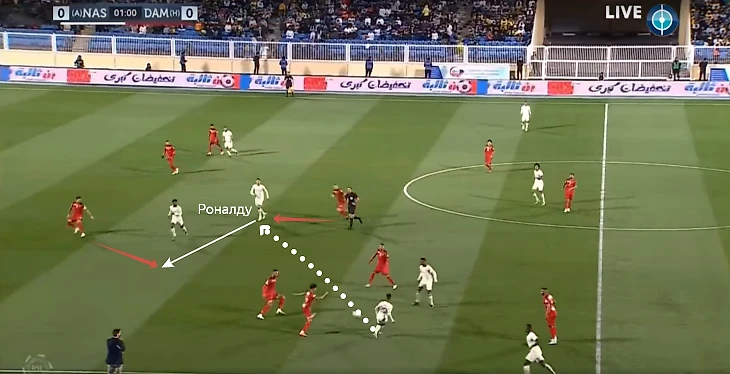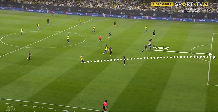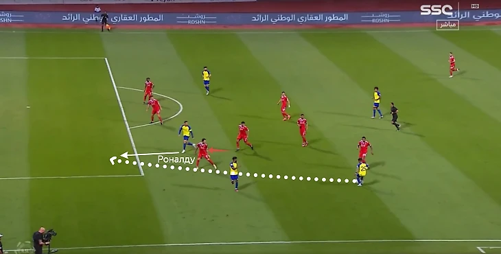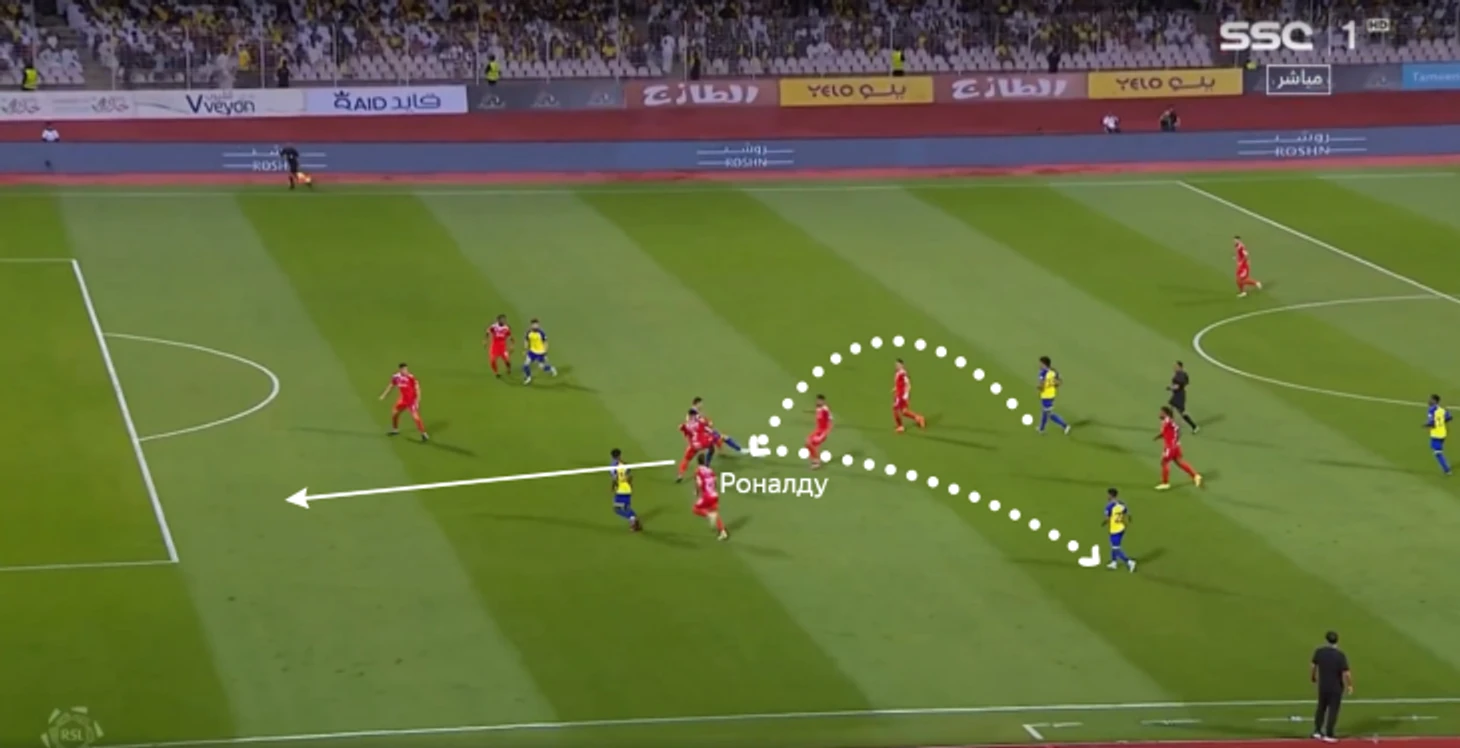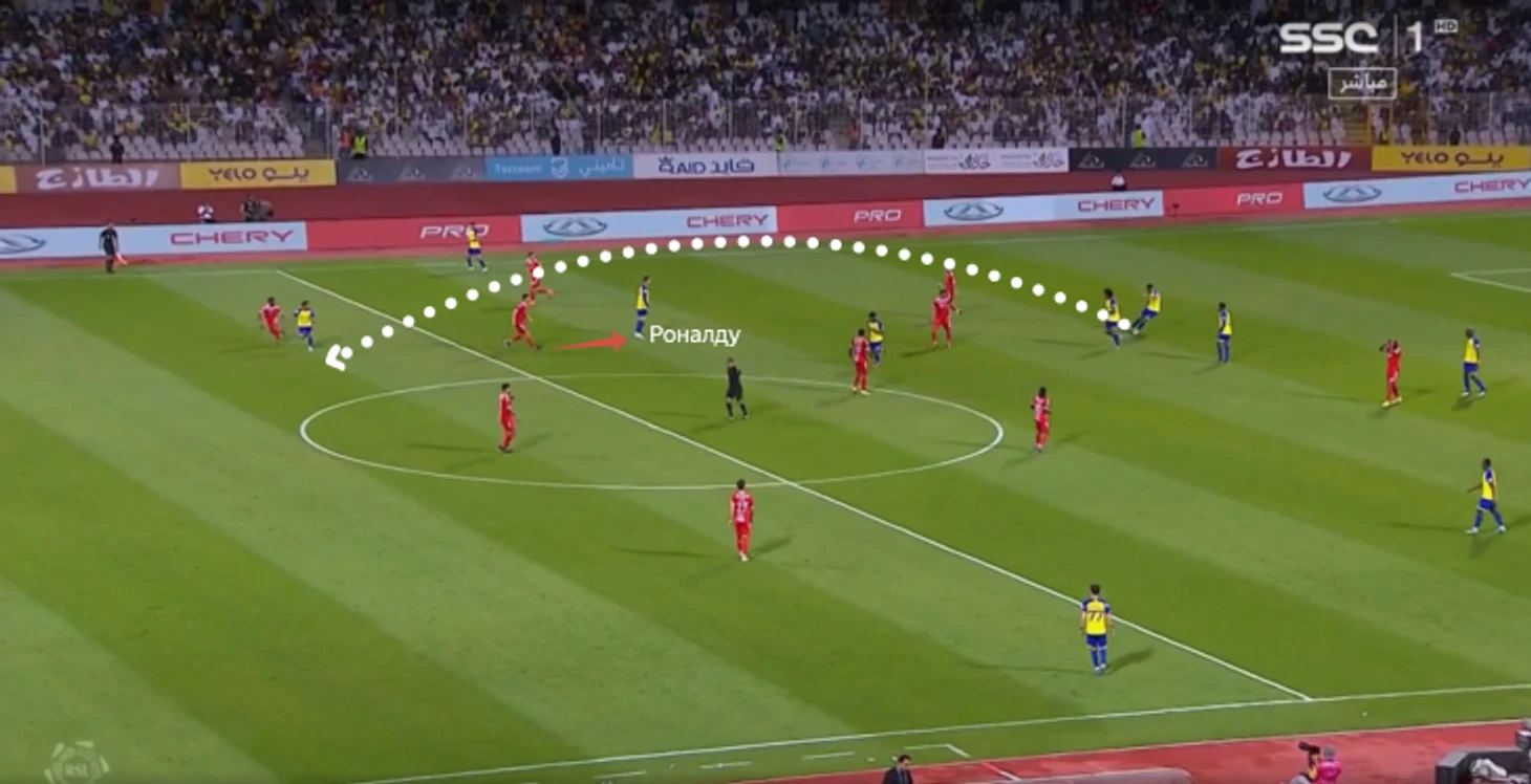 Свободная роль Роналду в «Аль-Насре» подразумевает частые смещения на фланг и движение между линий.