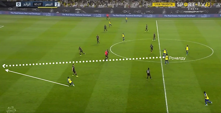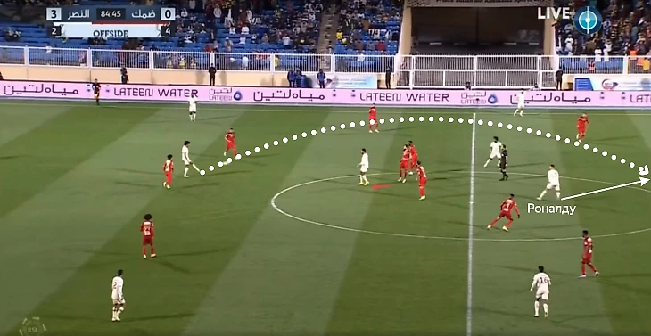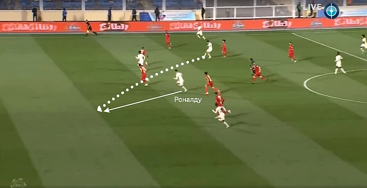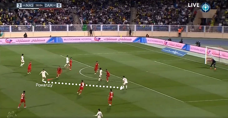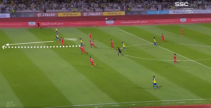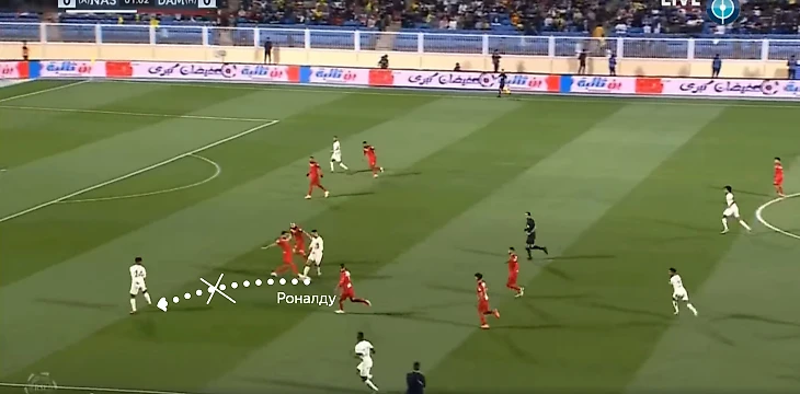 Рывки за спину давно уже стали фирменным приемом Роналду. В саудовской лиге их делать проще из-за низкого уровня защитников, но неудачные передачи партнеров негативно влияли на эффективность.