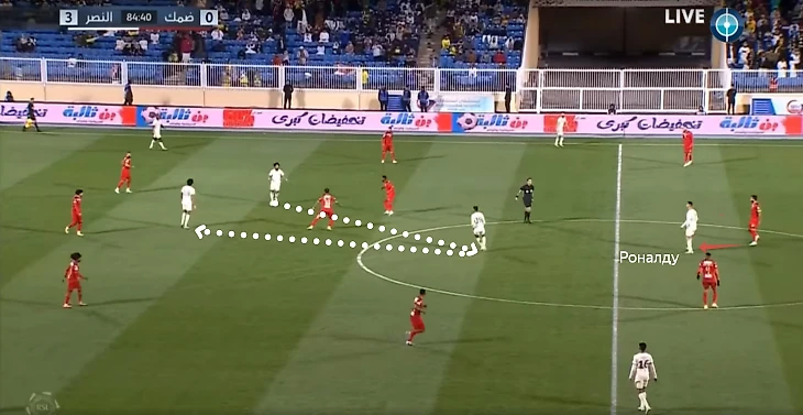 Защитник наблюдал за комбинацией «Аль-Насра» и упустил забег португальца.