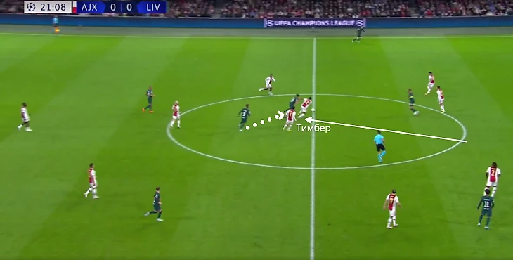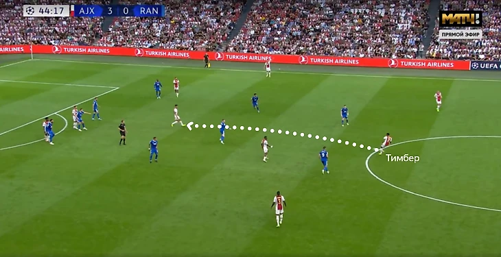 Рывки с мячом – фирменный элемент Тимбера. Так он разбивал прессинг (в «Аяксе» подстраивались под его движение)