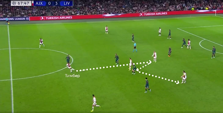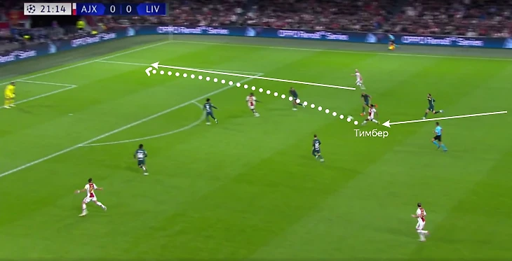 Большая сила Тимбера – передачи между линиями. Его мышление помогало структуре «Аякса» в любой момент использовать пространство и быстро доводить мяч ближе к штрафной.